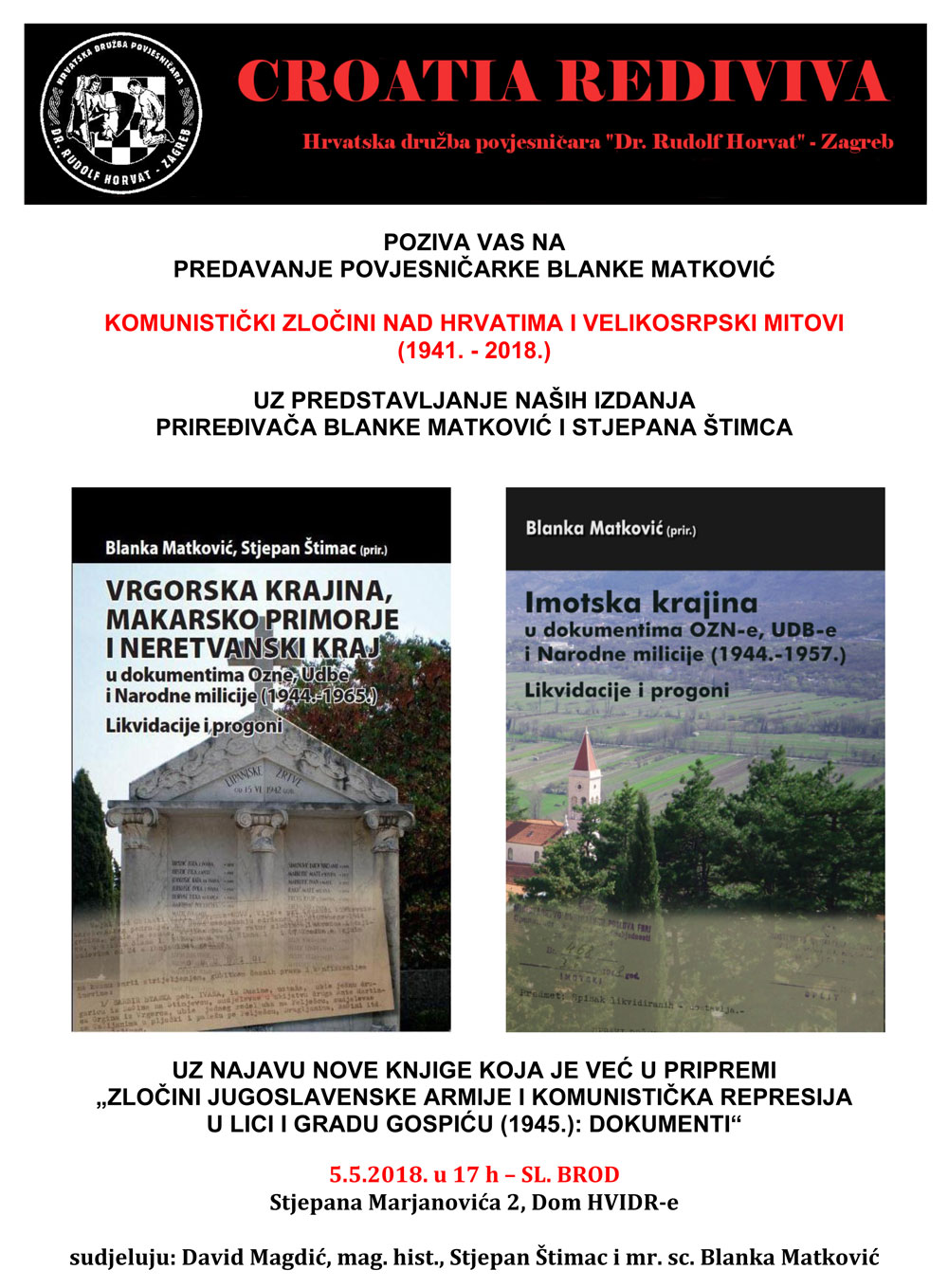 PREDAVANJE POVJESNIČARKE BLANKE MATKOVIĆ U SLAVONSKOM BRODU - SUBOTA, 05.05.2018.